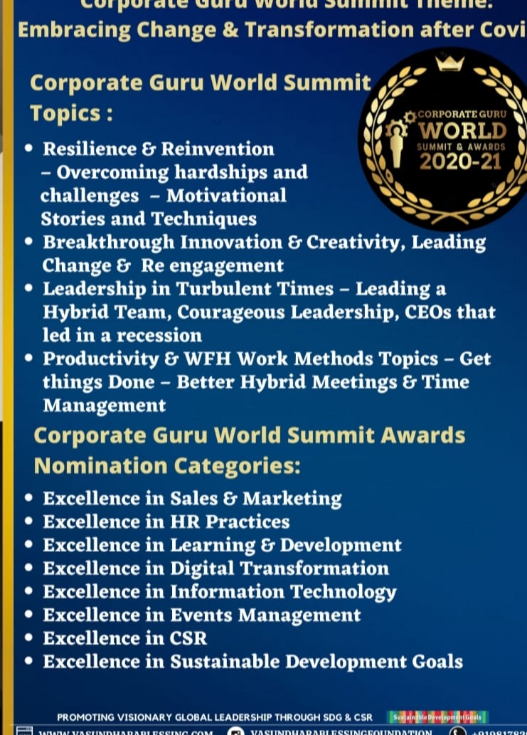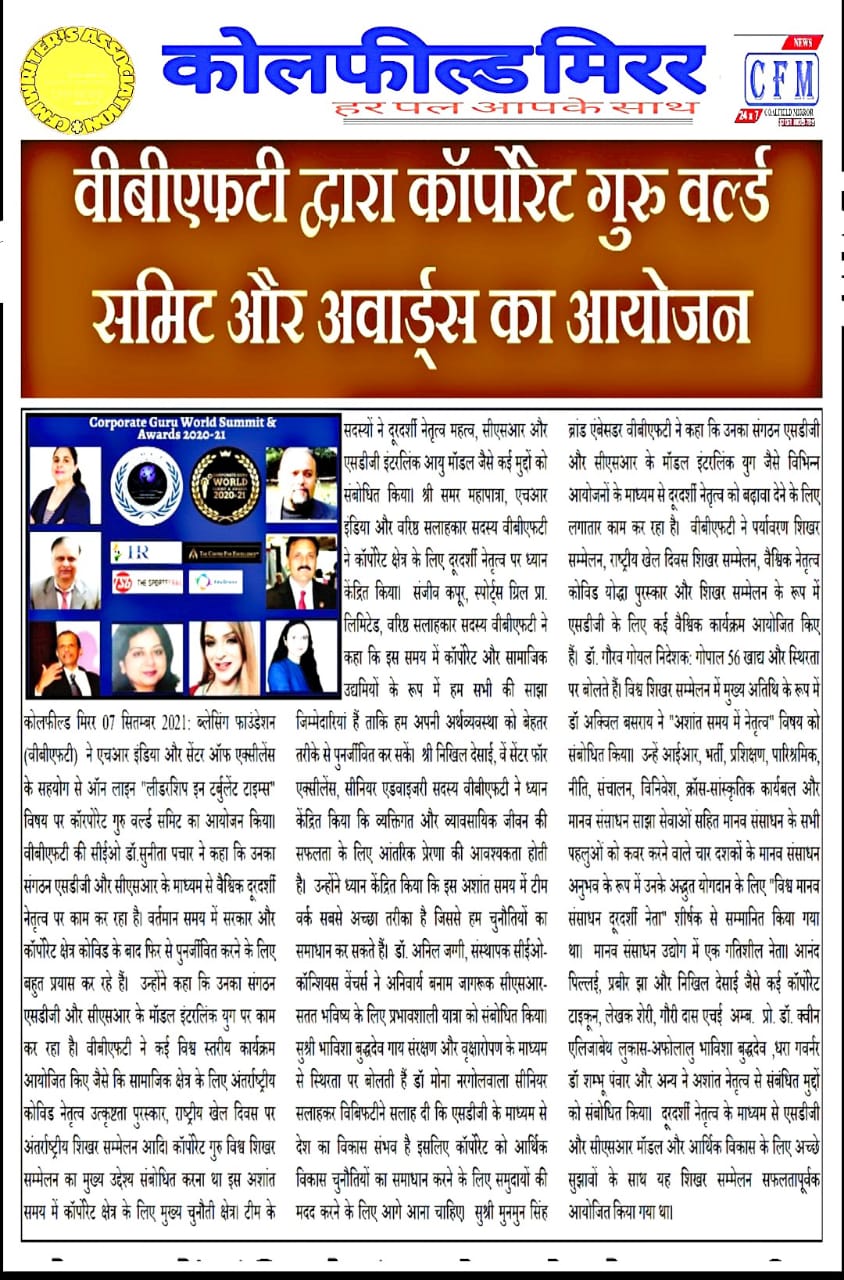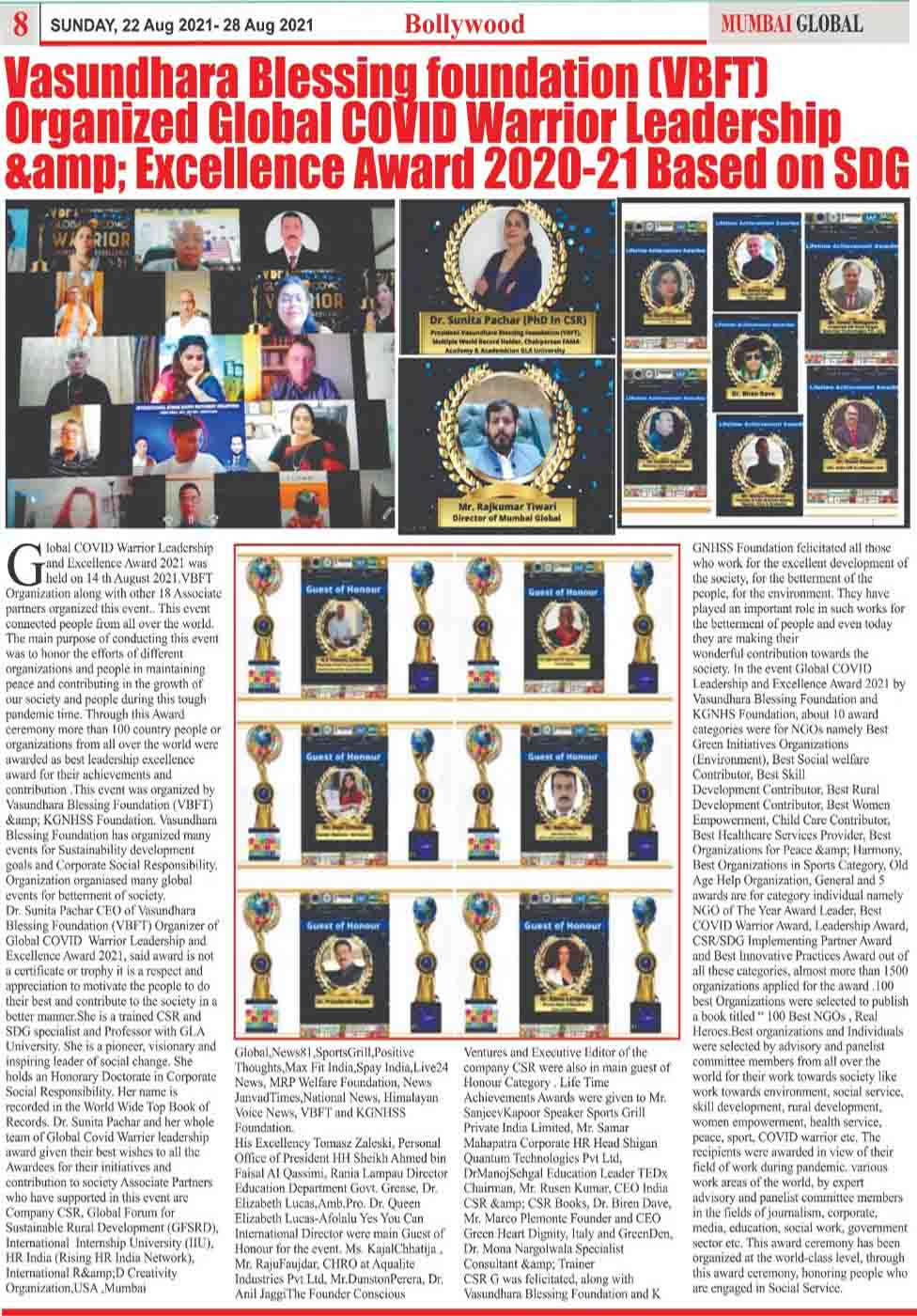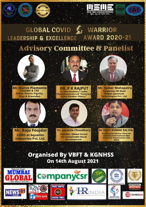 ग्लोबल कोविड़ वॉरियर लीडरशिप एंड एक्सीलेंस अवार्ड के द्वारा रियल हीरोज को किया जाएगा सम्मानित